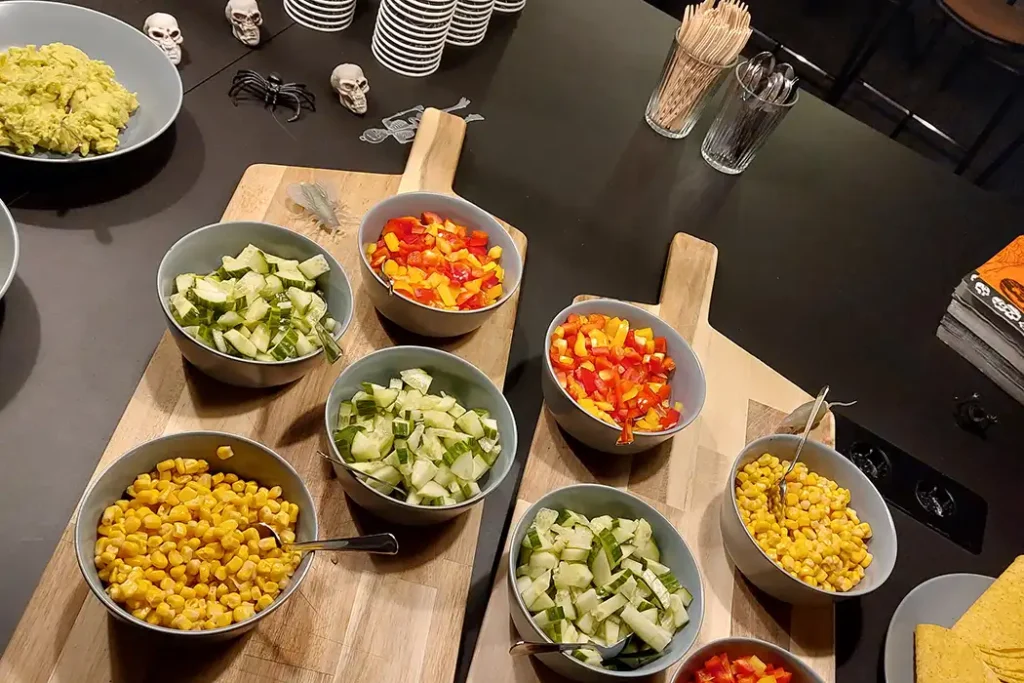 Da barna ankom, fikk de kostymer å ha på seg under kvelden som de deretter fikk ta med seg hjem. Det ble tilbudt ansiktsmaling og ulike aktiviteter som å pynte, male, perle, se film og muligheten til å prøve lykken i fiskedammen. Det ble servert lasagnebuffé, sjokoladekake, skummelt bål og popcorn fra vår popcornvogn. Kvelden ble satt pris på av både barn og voksne, og vi hos Transtema gleder oss allerede til neste års halloweenfest.