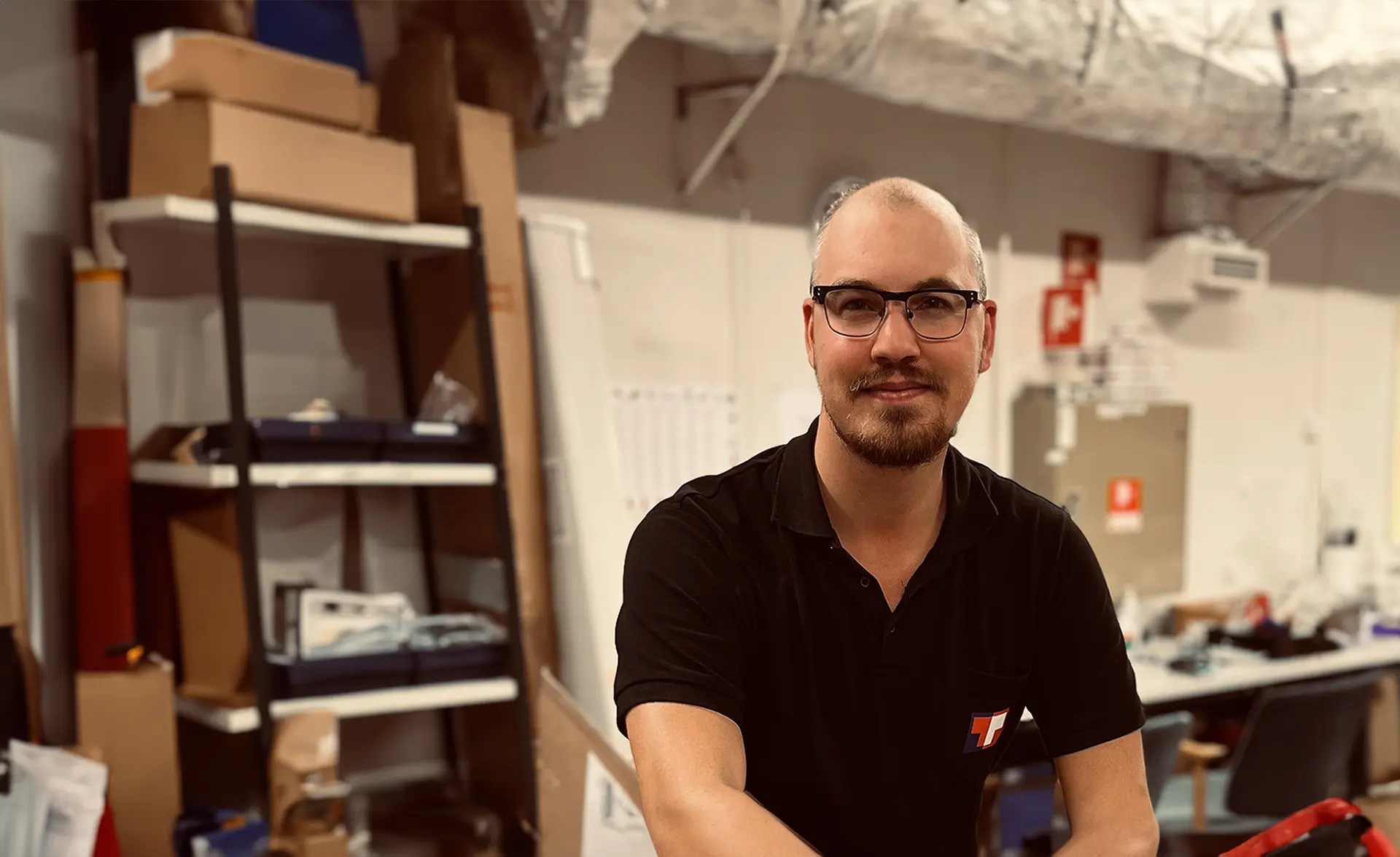 Emil Johansson er IKT-ingeniør og teamleder i Transtema. Han er ansvarlig for et team på åtte personer og jobber med installasjon og vedlikehold av IT-utstyr i datasentre. Emil har jobbet i Transtema i ti år, han trives godt på jobb og lærer stadig nye ting.